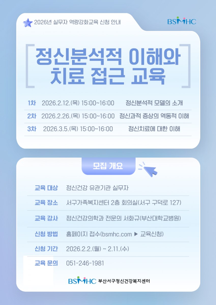 [교육] 2026년 실무자역량강화교육 '정신분석적 이해와 치료 접근' 안내